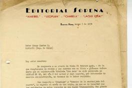 Buenos Aires, Argentina [a] Oscar Castro, Rancagua Carta, 1938 marzo 3, [manuscrito] Editorial Sopena.