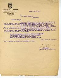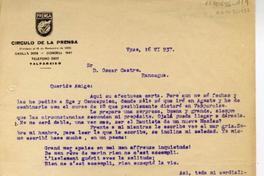 Valparaíso, Chile [a] Oscar Castro Carta, 1937 junio 16, [manuscrito] Augusto d'Halmar.