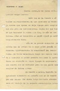 Buenos Aires, Argentina [a] Oscar Castro, Rancagua, Chile Carta, 1938 junio 12, [manuscrito] Héctor Fuad Miri.