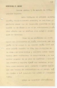 Buenos Aires, Argentina [a] Oscar Castro, Rancagua, Chile Carta, 1938 agosto 4, [manuscrito] Héctor Fuad Miri.