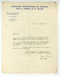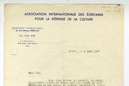 Con membrete: Association Internationale des Écrivains pour la Défense de la Culture.