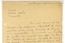 Santiago, Chile [a] Oscar Castro, Rancagua, Chile Carta, 1947 octubre 9, [manuscrito] Sylvia Ivonne.