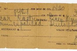 Rancagua, Chile [a] Ilustre Municipalidad de Antofagasta Recibo, 1946 septiembre 18, [manuscrito] / Oscar Castro. 1 recibo ; 7 x 19 cm. .