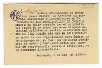 Rancagua, Chile [a] Oscar Castro Tarjeta, 1938 diciembre 5, [manuscrito] / M. A. Guzmán 1 tarjeta ; 9 x 14 cm. .