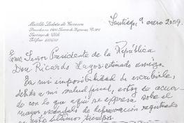Santiago, Chile [al] Presidente de la República Ricardo Lagos Carta, 2004 enero 9, [manuscrito] Matilde Ladrón de Guevara.