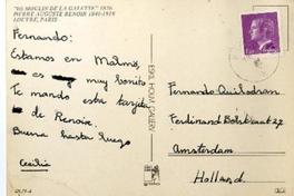 España, Suecia y Bélgica [a] Fernando Quilodrán, Ámsterdam Postales, entre 1981 y 1988, [manuscrito]. 10 postales ; 21 x 14 cm. .