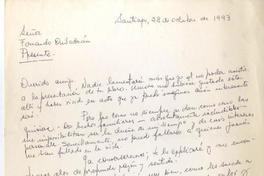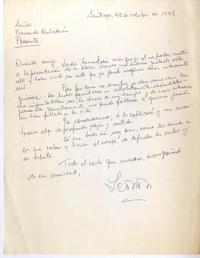 Santiago, Chile [a] Fernando Quilodrán Carta, 1993 octubre 28, [manuscrito] / [Leonardo]. 1 carta ; 27 x 21 cm. .