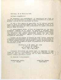 1 carta : Archivo del Escritor Biblioteca Nacional, Avenida Libertador Bernardo O'Higgins, Santiago, Chile.