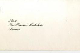 Santiago, Chile [a] Fernando Quilodrán Carta, 2003 marzo 21, [manuscrito] / Eduardo Araya Alemparte. 1 hoja : 27 x 21 cm ; 1 sobre (11,5 x 17 cm). .