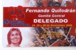 Credencial de identificación como delegado el comité central del Partido Comunista en el 23 Congreso Nacional.