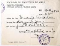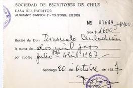 Recibos por pago de cuotas de Fernando Quilodrán, como socio de la Sociedad de Escritores de Chile.