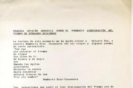 [Pequeña opinión genérica sobre el poemario "Averiguación del tiempo"] [manuscrito] Bernardo Chandía Fica.