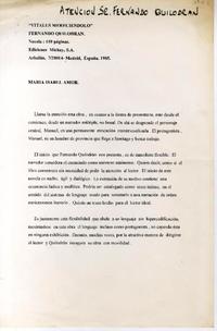 "Vitales mereciéndolo" de Fernando [manuscrito] / María Isabel Amor. 3 hojas : 32 x 21 cm. .