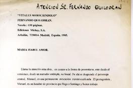 "Vitales mereciéndolo" de Fernando [manuscrito] María Isabel Amor.