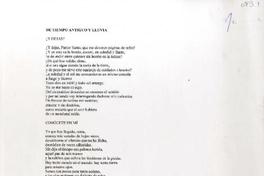 De tiempo antiguo y lluvia [manuscrito] / Fernando Quilodrán. 11 hojas : 27x 21 cm. .