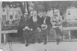 Alberto Romero junto a Gabriel Amunátegui Jordán, Jorge Neut Latour, Justiniano Sotomayor, en la Plaza de Puerto Montt, periodo del destierro por la dictadura de Ibáñez del Campo.