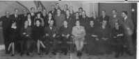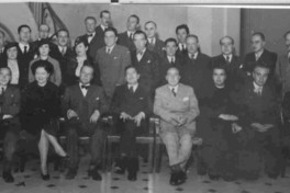 Homenaje a Pedro Prado por el "Premio Roma", presentes: Encargado de Negocios de Italia, Sr. Silenzi, Alberto Romero, Alfonso Escudero, Jenaro Prieto, Luis Durand y Pedro Prado entre otros.
