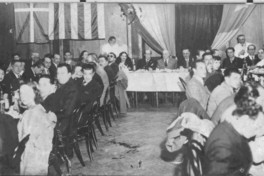 Homenaje a la República Española. Asisten: Políticos y escritores chilenos, Alberto Romero, Marco de Lizama, Rodrigo Soriano, Diego Muñoz, Eleazar Huerta, entre otros.