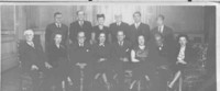 Homenaje a Teresa López, embajadora y escritora panameña. Asisten: Alberto Romero, Augusto d'Halmar, Lenka Franulic, Benjamín Carrión, Teresa López, Juvencio Valle, Mariano Latorre, Eduardo Barrios y Agustín Bello.