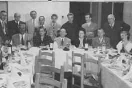 Homenaje a Guillermo de Torres Ballestero. Asisten: Alberto Romero, Rosamel del Valle, Manuel Rojas, Luis Durand, José González Vera, Humberto Díaz Casanueva, Padre Alfonso Escudero.