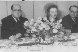 Homenaje a Salvador Reyes, entre los asistentes: Alberto Romero, Teresa León y Salvador Reyes.