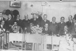 Homenaje a José Santos Gonzáles Vera, asisten: Mariano Latorre, Luis Durand, Joaquín Edwards Bello, Alberto Romero, Alfonso Hernández, Norberto Pinilla entre otros.