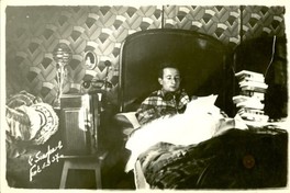 Retrato de Roque Esteban Scarpa en el dormitorio de su casa.