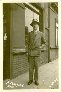 [Retrato de Roque Esteban Scarpa] [fotografía] / Esteban Scarpa Covacevich. Punta Arenas, Chile : [Foto Esteban scarpa], 6 de agosto de 1929. 1 fotografía : Monocromo blanco y negro ; 6 x 8,8 cm. .