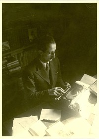 [Retrato de Roque Scarpa] [fotografía]. Santiago, Chile : [Producción no identificada], [cerca de 1940]. 1 fotografía : Monocromo blanco y negro ; 8,7 x 11,5 cm. .