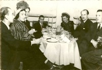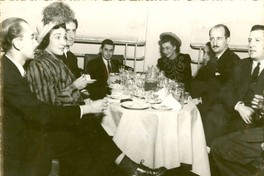 Roque Esteban Scarpa en el Hotel Crillón con Ana González (La Desideria), Fernando Debesa, Pedro Orthous, Magdalena Vicuña,y Pedro Morteiru.