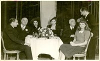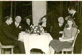 Roque Esteban Scarpa en el Hotel Ritz en Madrid, conversando con Eugenio D'ors, entre los asistentes: Julián Pemartín, Director del Instituto Nacional del Libro Español, Adriano del Valle (poeta).