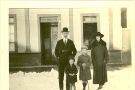 Roque Esteban Scarpa junto a sus padres Esteban Scarpa Covacevich y María Esperanza Straboni, y su hermano José frente a su casa en Punta Arenas.