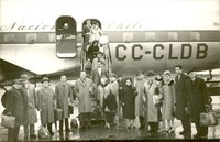 Roque Scarpa en el aeropuerto a su llegada a Punta Arenas a la Escuela de Invierno de la Universidad de Chile. Entre sus profesores: Máximo Pacheco Gómez, Armando Roa, Luis Hernández Parker.