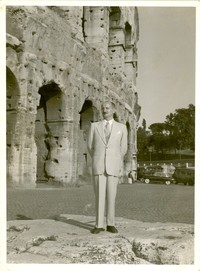 [Roque Scarpa en Italia] [fotografía]. Roma, Italia : [Producción no identificada], 30 de mayo de 1956. 1 fotografía : Monocromo blanco y negro, 12,8 x 18 cm. .