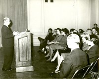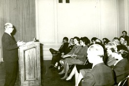 [Conferencia] [fotografía]. Santiago, Chile : [Producción no identificada], 1 fotografía : Monocromo blanco y negro ; 20 x 23,5 cm. .