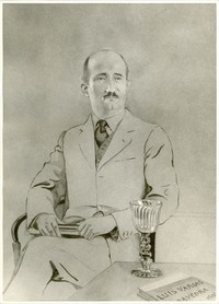 Fotografía de un retrato en técnica mixta de Roque Scarpa realizado por Luis Vargas Saavedra.