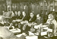[Reunión en la Sala Ercilla de la Biblioteca Nacional] [fotografía]. Santiago, Chile : [Producción no identificada], 19 de julio de 1974. 1 fotografía : Monocromo blanco y negro, 12 x 18 cm. .