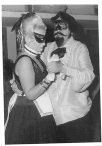 Julio Barrenechea bailando con su esposa Ann Younglestone en una fiesta de disfraces.