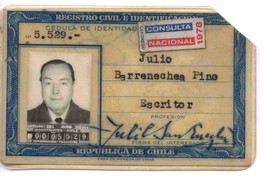 Carnét de indentidad de Julio Barrenechea con el sello de la Consulta Nacional realizada el año 1978 en Chile.