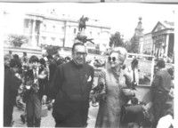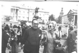 Julio Barrenechea con su esposa Ann Youngleston paseando por la Plaza de Trafalgar en Londres.