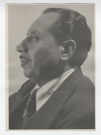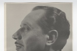 [Retrato de Rosamel del Valle] [fotografía]. Santiago, Chile : [Producción no identificada], 1945. 1 fotografía : Monocromo blanco y negro, papel brillante ; 12,5 x 17,8 cm. .