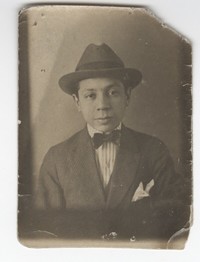 [Retrato de Rosamel del Valle] [Fotografía]. Santiago, Chile : [Producción no identificada], 1918. 1 fotografía : Sepia ; 4 x 6 cm. .