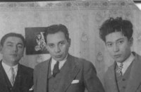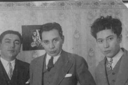 Rosamel del Valle en su juventud junto a dos personas no identificadas.