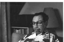 [Retrato de Rosamel del Valle] [Fotografía]. Nueva York, Estados Unidos : [Producción no identificada], cerca de 1960. 1 fotografía : Monocromo blanco y negro, papel brillante ; 11,5 x 8 cm. .
