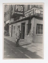 [Rosamel del Valle en Nueva York] [Fotografía]. Nueva York, Estados Unidos : [Producción no identificada], 1952. 1 fotografía : Monocromo blanco y negro, papel brillante ; 8,5 x 11,5 cm. .