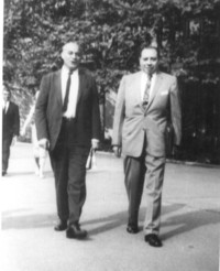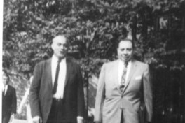 [Rosamel del Valle en Nueva York] [Fotografía]. Nueva York, Estados Unidos : [Producción no identificada], cerca de 1958. 1 fotografía : Monocromo blanco y negro, papel brillante ; 11,5 x 8 cm. .