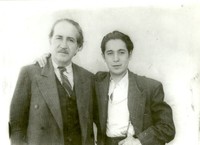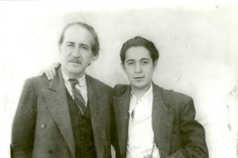 [Antonio Acevedo con Nicomedez Guzmán] [Fotografía]. [Santiago, Chile] : [Producción no identificada], 1942. 1 fotografía : Monocromo blanco y negro, papel brillante ; 11,6 x 17,1 cm. .