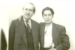 [Antonio Acevedo con Nicomedez Guzmán] [Fotografía]. [Santiago, Chile] : [Producción no identificada], 1942. 1 fotografía : Monocromo blanco y negro, papel fotográfico mate ; 12 x 18 cm. .