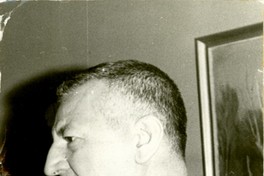 Retrato de Braulio Arenas [Fotografía]. [Santiago, Chile ] : [Producción no identificada], cerca de 1965. 1 fotografía : Monocromo blanco y negro, papel fotográfico brillante ; 7 x 20,2 cm. .