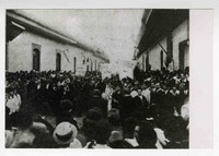 Funerales de Rubén Darío [Fotografía]. [Santiago, Chile] : [Producción no identificada], 3 de febrero de 1916. 1 fotografía : Monocromo blanco y negro, papel mate ; 12,1 x 18 cm. .